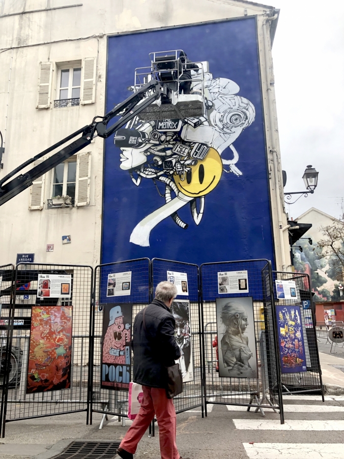 2017 : Nouvelle exposition personnelle « Effets secondaires », Galerie Itinerrance, Paris. Réalisation d’un mur de 30 mètres de hauteur sur le Boulevard Vincent Auriol dans le 13ème arrondissement pour le projet Street Art 13.