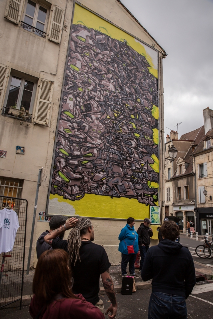 Un musée en plein air, une galerie ouverte à tous qui se métamorphose directement sous les yeux des passant·e·s, ayant pour ambition de fracturer la frontière invisible qui sépare le public de l’art. Ce projet audacieux se cristallise sous l’appellation du M.U.R (pour Modulable, Urbain, Réactif) et est représenté par un support de 8 x 4 mètres situé au cœur du centre ville de Dijon, au carrefour de la rue Jean-Jacques Rousseau et de la rue d’Assas.